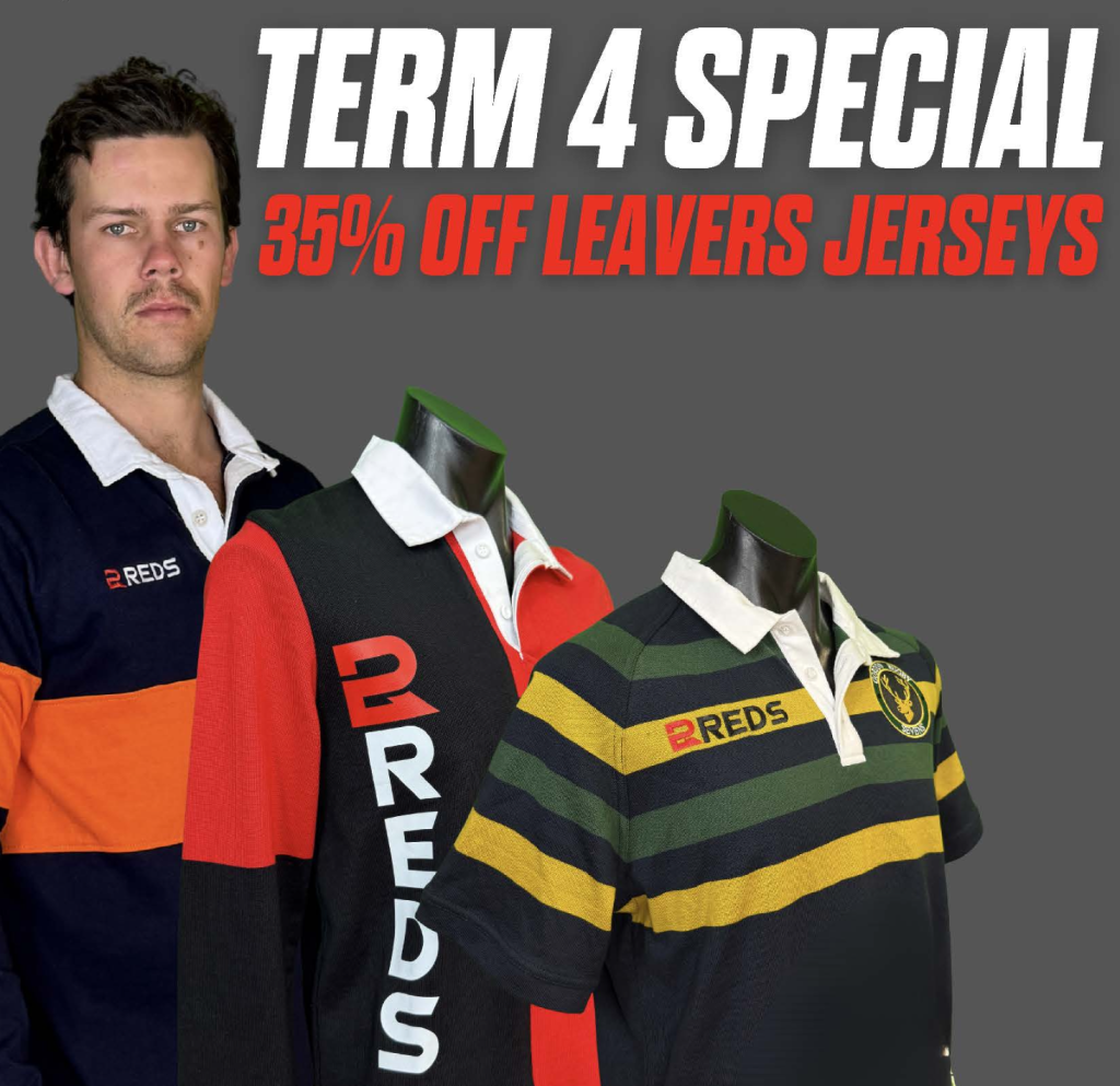 Celebrate the end of the school year in style with 2Reds’ exclusive Term 4 Special — enjoy 35% off all custom Leavers Jerseys. Designed for comfort, durability, and standout style, our jerseys are the perfect way for students to commemorate their final year. Hurry, this limited time offer won’t last, get your order in now and make your leavers gear one to remember!