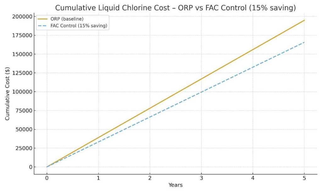 In contrast, FAC-controlled systems directly measure the true concentration of free chlorine (mg/L), the most accurate indicator of microbial inactivation and compliance. By providing real-time chlorine data, FAC control eliminates the uncertainty of ORP-based interpretation and allows for faster, more precise chemical dosing. This ensures stable disinfectant levels that meet public health regulations and effectively inactivate pathogens. Reflecting this, New South Wales removed ORP as an accepted compliance method in its Public Health Regulation 2022, highlighting a shift toward direct residual chlorine monitoring.