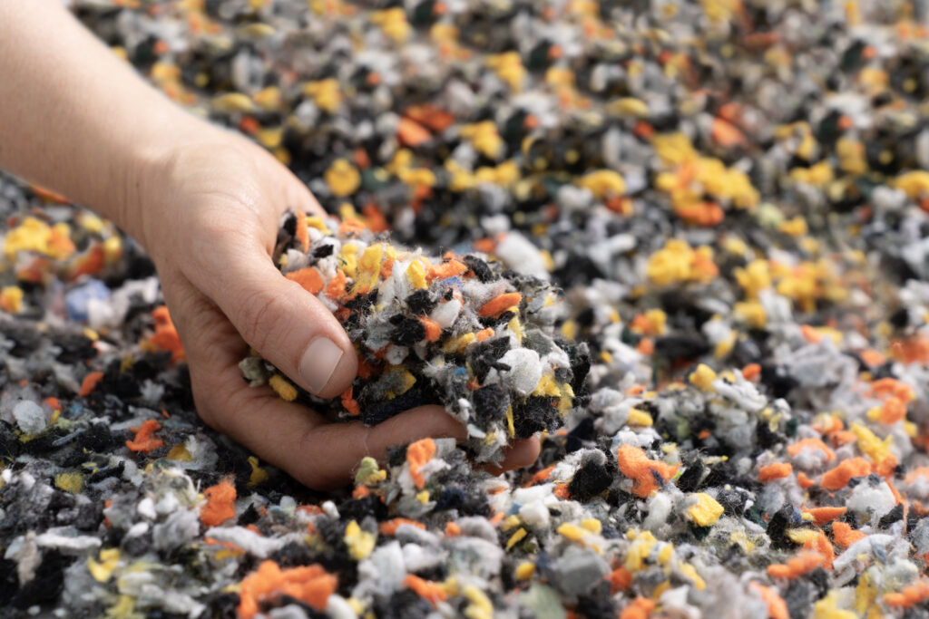 Our products are made from 100% polyester fibre, ranging from a minimum of 42% recycled PET plastics up to 91%, with many sitting on the higher end. This not only diverts waste from landfill but also supports circular design principles through our takeback and reuse programs. - Low VOC and non-toxic