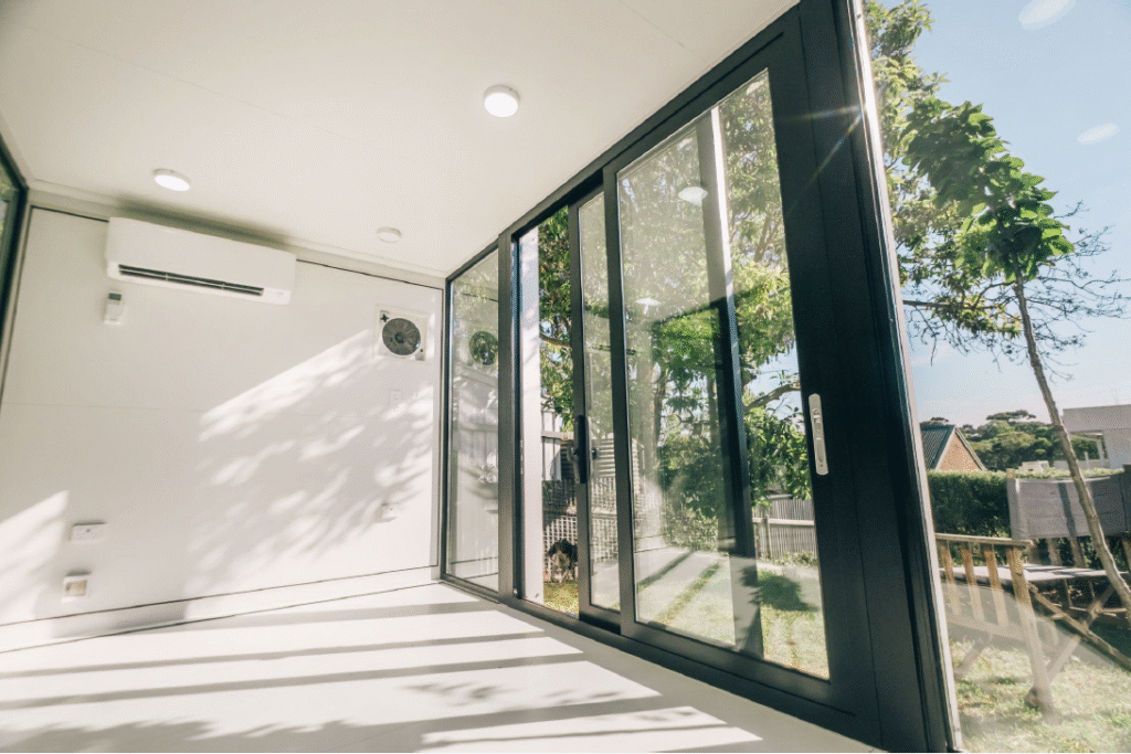 In Port Willunga, Elsewhere Tiny Homes created a meditation escape pod designed as a calming retreat. Installed in less than two days, it combines natural light, air-conditioning, and optional sound-proofing for focus and calm. Surrounded by glass, the pod connects directly to nature while providing privacy inside.