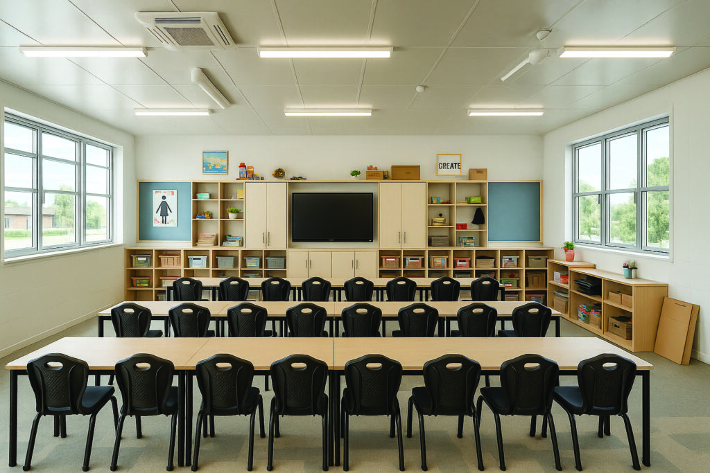 Modular construction significantly reduces on-site activity and shortens build times, supporting safer and more predictable project outcomes. With modules completed off-site, including finishes and fixtures, installation is rapid, often taking only hours. This ensures schools can maintain normal operations while still gaining access to new, high-quality facilities faster than traditional construction allows.